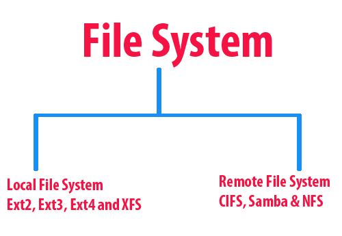 Linux file system is a method to partition the Hard Disk drive into multiple partitions. Partitions are used to store the data by making Linux File System in it. Basically Linux File systems are two types as shown below