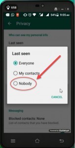 Open Whatsapp Application Settings > Accounts > Privacy > Last seen
