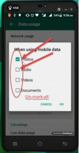 Whats App Settings > Data uses > Un-mark all